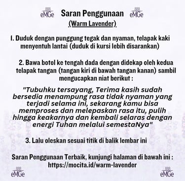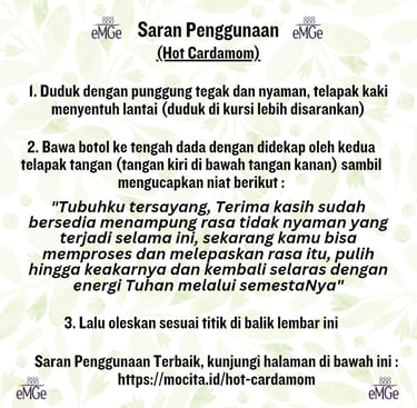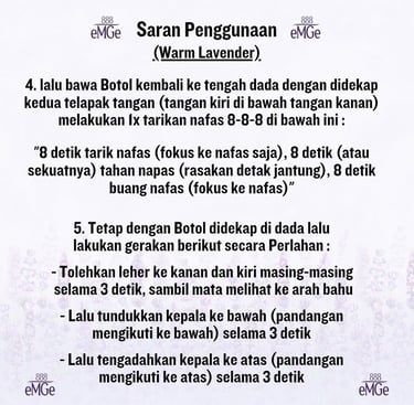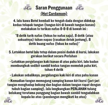 Minyak dalam botol roll-on praktis yang merupakan gabungan energi keseimbangan alami dari tanaman, rempah dan kristal, dikurasi secara ilmiah dan spiritual, untuk membantu menyeimbangkan energi fisik, mental dan emosional