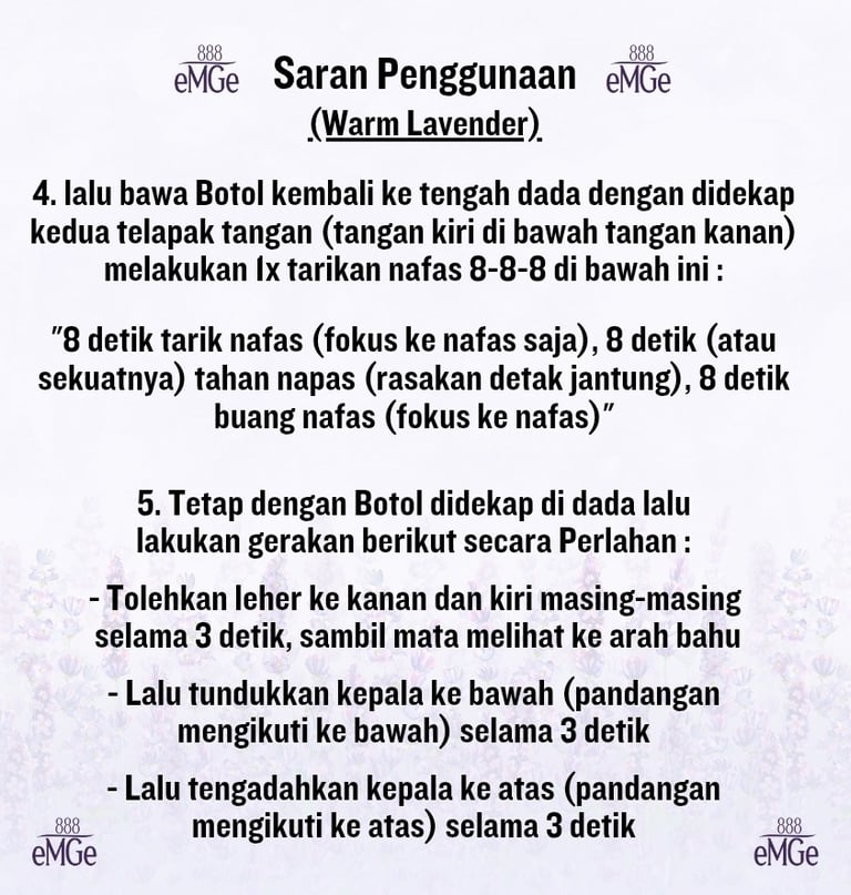 Bahan alami seperti minyak Lavender dan Lemon yang dikenal dengan efek relaksasinya, dapat membantu meringankan gejala stres, memperbaiki mood dan meningkatkan kualitas tidur. Sedangkan minyak Peppermint yang mengandung menthol dan minyak Citronella dapat memberikan sensasi dingin menyegarkan yang mampu meredakan sakit kepala juga meningkatkan fokus.
