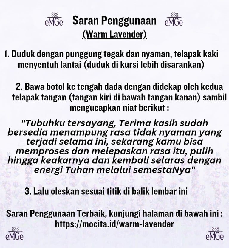 Didukung dengan infuse kristal Amethyst dan Rose Quartz, sehingga minyak ini membantu meregulasi energi halus tubuh, menarik kesadaran fisik, mental, emosional ke momen saat ini (present moment) dengan menghubungkan energi dari chakra mata ketiga (ajna) menuju chakra jantung (heart chakra)